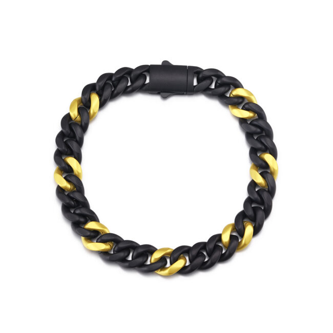 High-end Miami cuban chain with matte finish bracelet/necklace in two tone 18K gold&black plating,avalaible in width 6/8/10/12 and length in 7.5/8/8.5/9/18/22/24 inches etc.