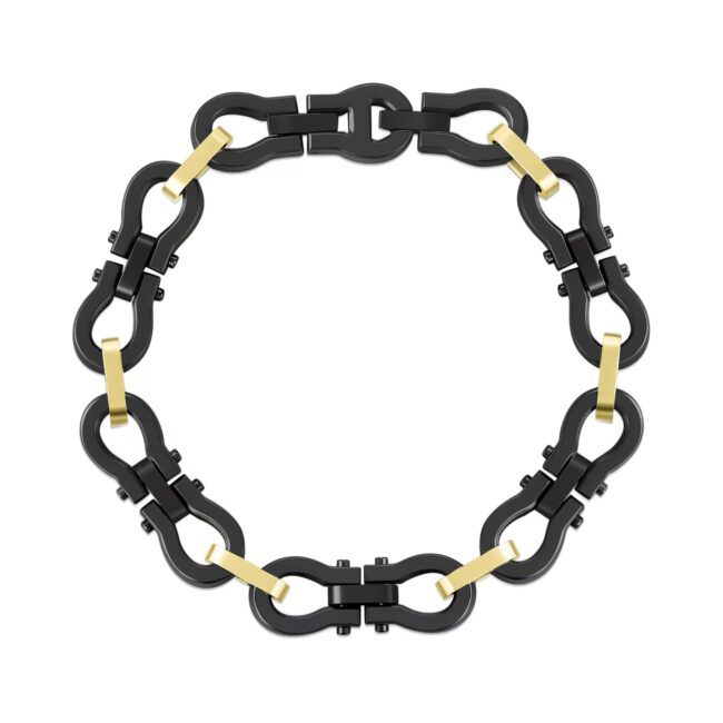 Men’s Stainless Steel Omega links Bracelet with Extender in IP Yellow Gold&black matte Finish