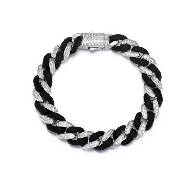 High-end New powder casting Two Tone rounded with white stone sets link chain high polishing finish bracelet/necklace in steel/IP Black plating