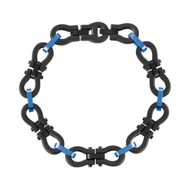 Men’s Stainless Steel Omega links Bracelet with Extender in IP Black&blue Matte Finish