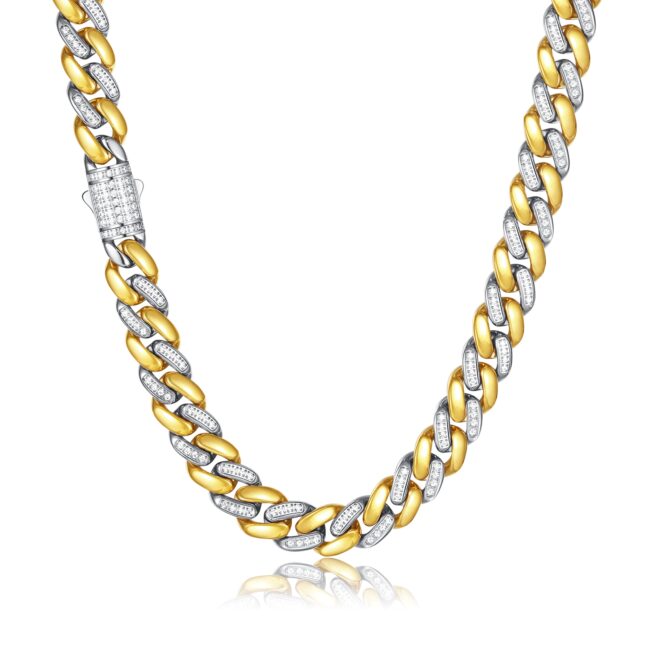 High-end New powder casting Two Tone rounded with white stone sets link chain high polishing finish bracelet/necklace in steel/IP 18K gold plating