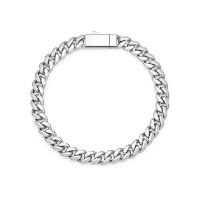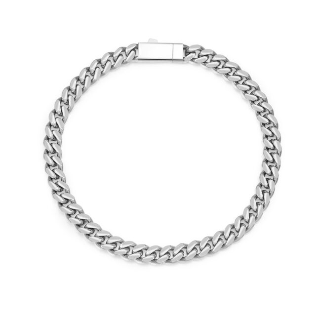 High Polished finish Miami Cuban Chain with flat clasp, Available in widths 6/8/10/12mm and lengths 7.5/8/8.5/9/18/20/22/24 inches