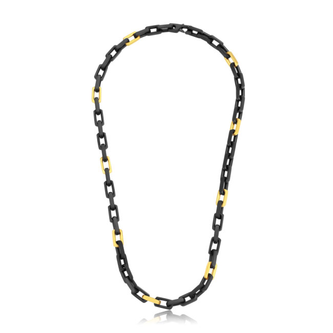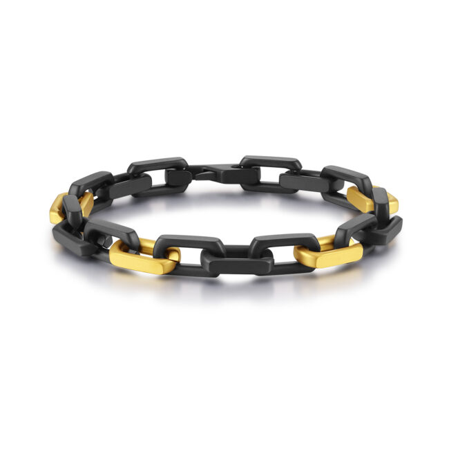 Matte finish Oversized square links chunky bracelet/chain with two tone IP black&18K gold plated color as pic
