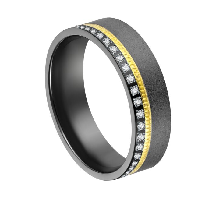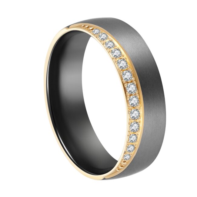 Couple Ring for Her with white CZ all around, Available in Stainless Steel / Pure Titanium / Tantalum / Zirconium