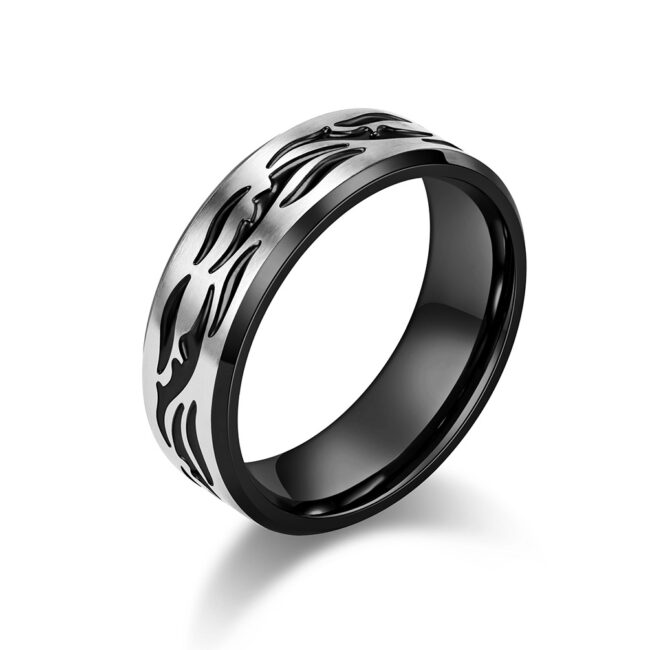 8mm width 316L Stainless Steel matte finished tribal pattern ring with IP Black/gold plated