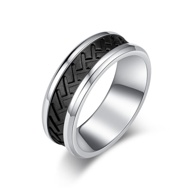 8mm width 316L Stainless Steel matte finished tire pattern ring with IP Black/gold plated