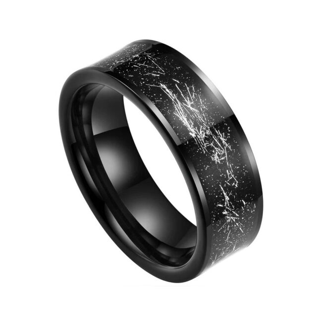 8mm width 316L Stainless Steel Pipe-cut Edge ring with Silver Foil Inlay in IP Black Plated