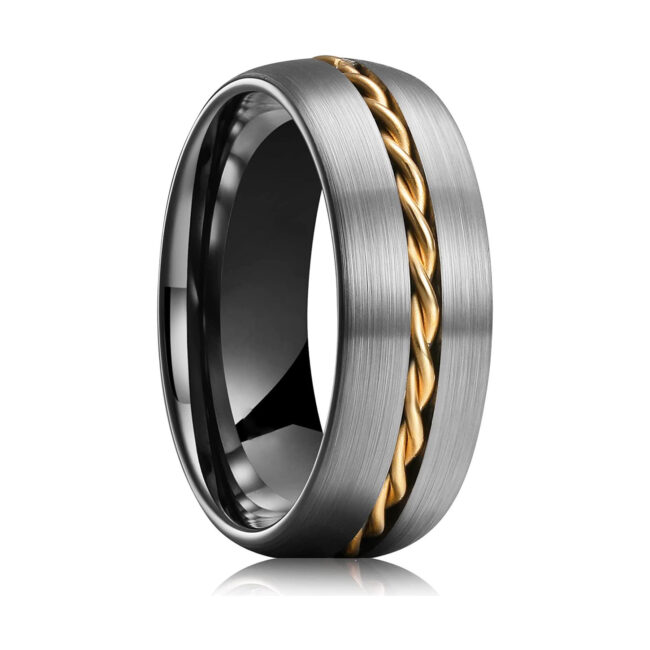 8mm width 316L Stainless Steel Gold Steel Wire Inlay Line Brushed Surface in steel color