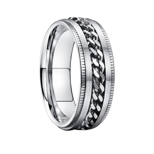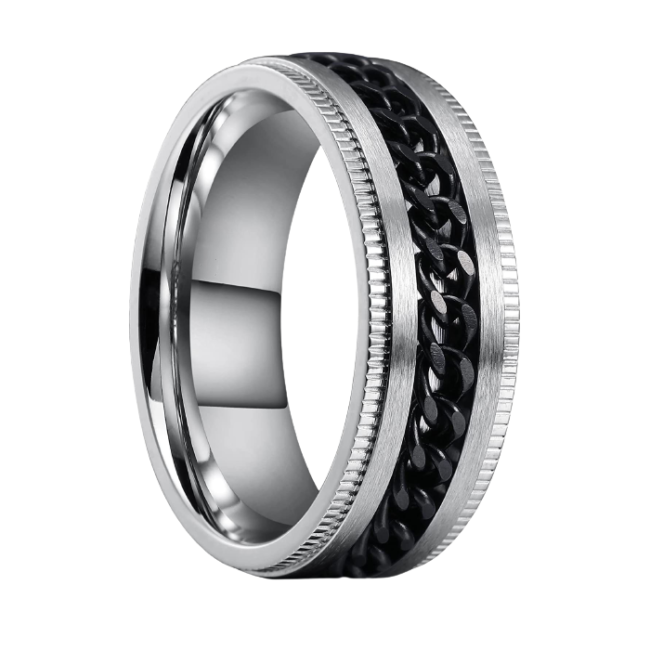 8mm width 316L Stainless Steel Spinner ring with engraved enamel pattern in steel color