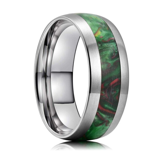 8mm width 316L Stainless Steel High Polishing ring with green wood inlaid in steel color