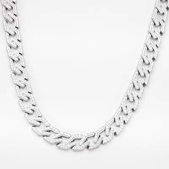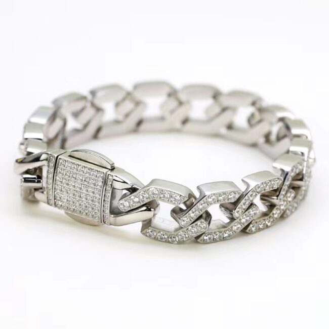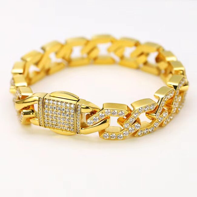 12mm width and 8/8.5/22/24 inches New full stone of Hexagon link chain with high polishing bracelet/necklace in steel/IP 18K gold plating