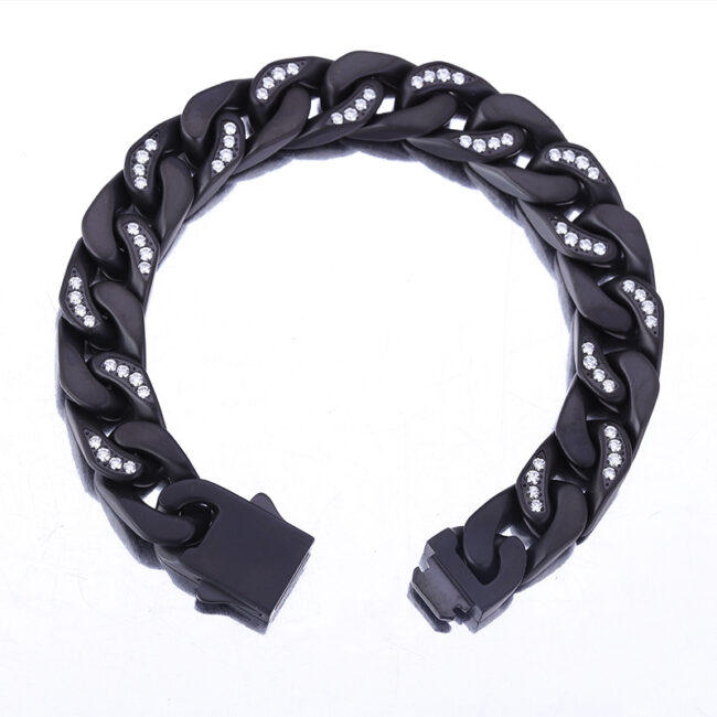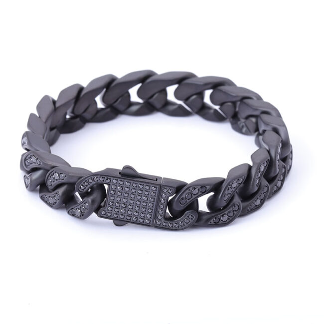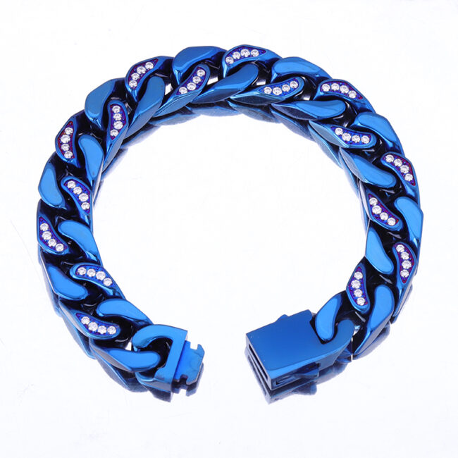 12mm in width and 8/8.5/9/9.5/18/20/22/24 inches in length Miami Cuban Link Chain Bracelet diamond Lock Real Solid with IP Blue/ Black/18K gold/gunmetal/steel Finish Stainless Steel, Miami Cuban Link bracelet/necklace with lock Box Clasp