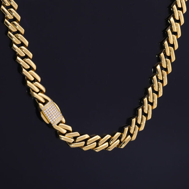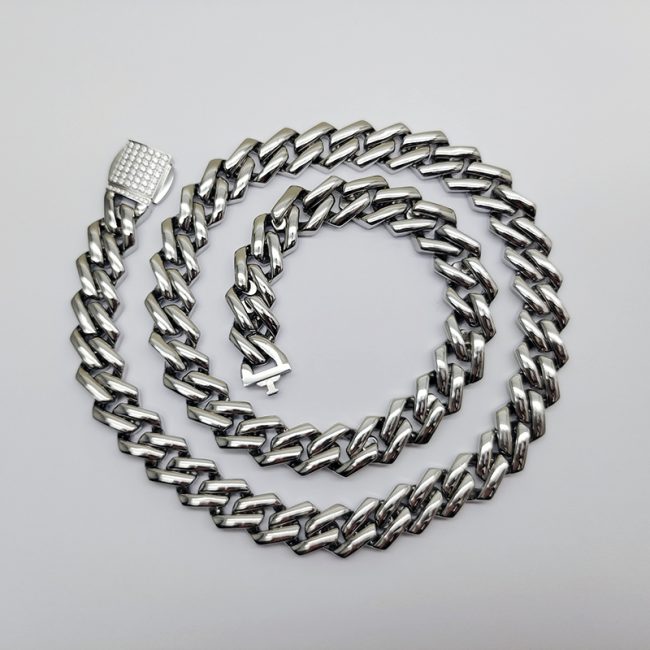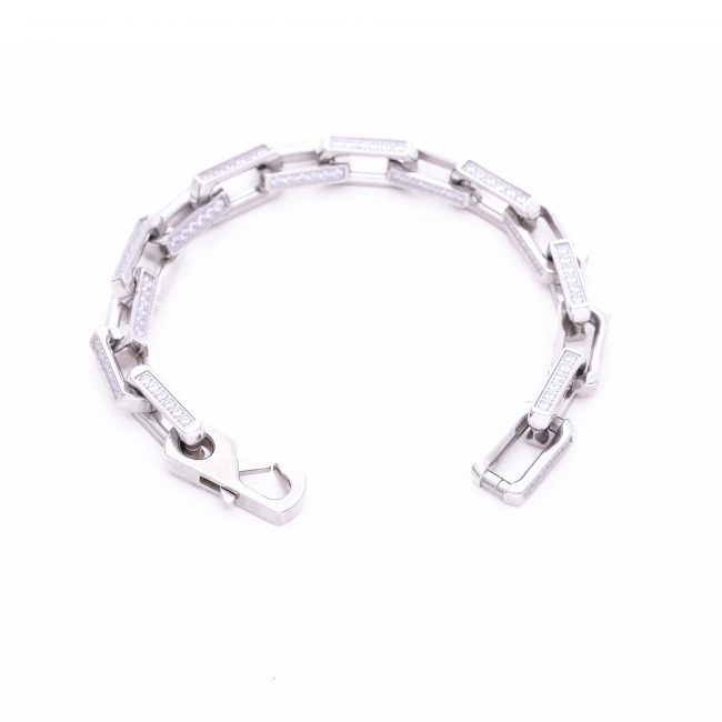 Available for width 12mm and length in 7.5/8/8.5/9/9.5/18/22/24/28 inches High polishing rhombic Link Chain Bracelet/Necklace diamond Lock clasp Real Solid 18K Gold/Blue/gunmetal with matte finish/Steel Finish in Stainless Steel with CZs by CNC Setting