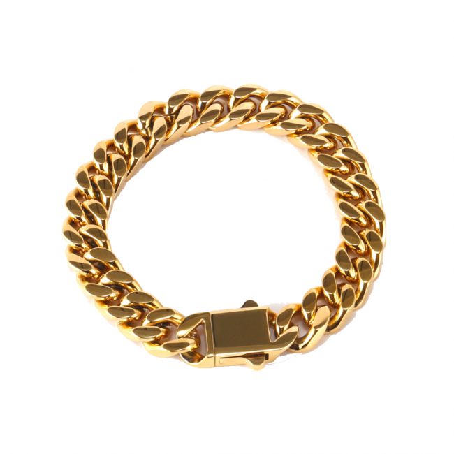 6/8/10/12/14mm width and 18/20/22/24 inches Curb Chain Bracelet diamond Lock Real Solid steel color and 18K Gold Finish Stainless Steel, bracelet/necklace with lock Box Clasp