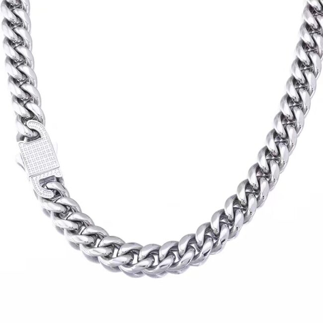 8/10/12/14 mm in width and 8/8.5/9/9.5/18/20/22/24 inches in length Miami Cuban Link Chain Bracelet diamond Lock Real Solid with IP Blue/ Black/18K gold/gunmetal/steel Finish Stainless Steel, Miami Cuban Link bracelet/necklace with lock Box Clasp