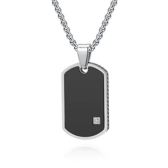 Men’s Stainless Steel Two Tone Dog Tag pendant in IP Black/Gold and Steel colors with a white CZ 5A