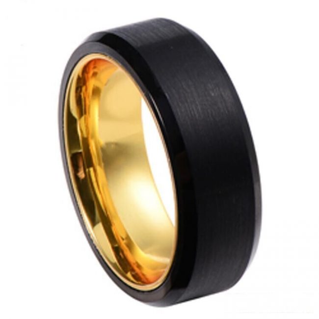 Tungsten Wedding Band, Black Tungsten Ring, Anniversary Ring, Engagement Ring, black yellow gold Rose Gold Ring