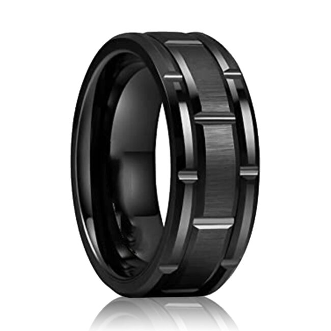 Men’s 8mm Silver/Black/ Tungsten Carbide Wedding Band Brick Pattern Brushed Finish