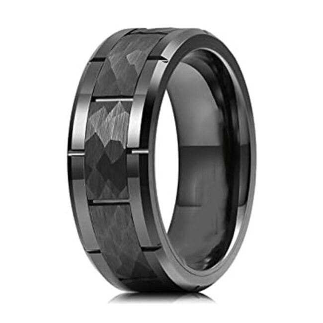 8mm Polished hammer Tungsten carbide Ring black Plated Inlay with Brilliant Stones Comfort Fit