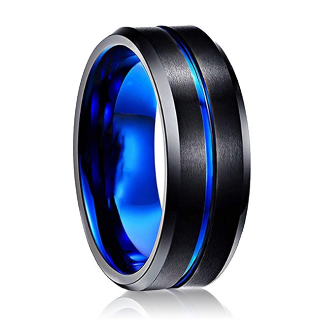 6mm/8mm/10mm Tungsten Ring for Men Women Black/Blue/Gold/Rose Gold/Silver Groove Wedding Bands Beveled Edges