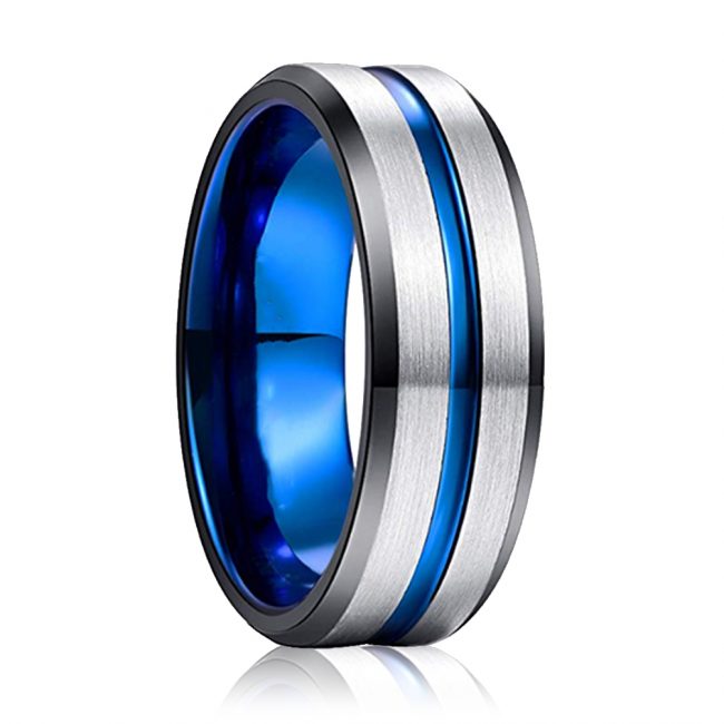 6mm 8mm Tungsten Titanium Wedding Ring Blue Laser Pattern Engagement Band for Men Women