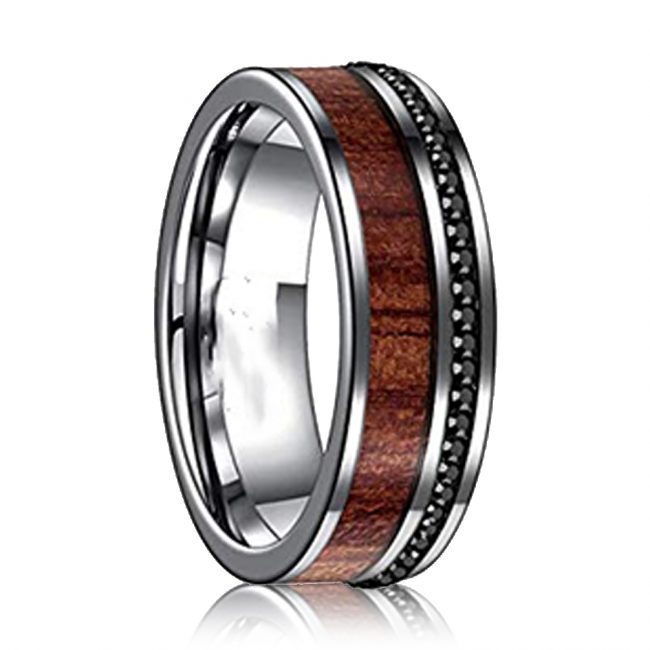 Men’s 8mm Black Tungsten Carbide Ring Men natural wood Polished Finish Comfort Fit Size 6-15