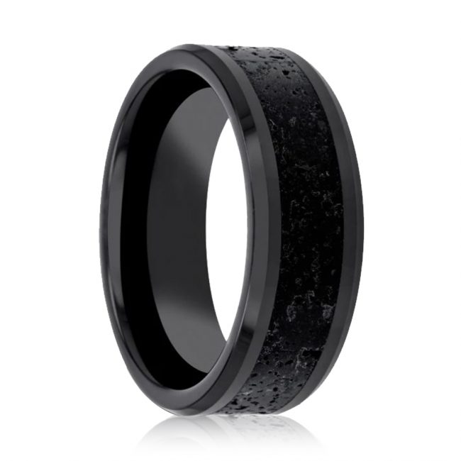 8mm-Tungsten/S.st/Titanium ring with Natural lava stone inlay and Black IP Plating