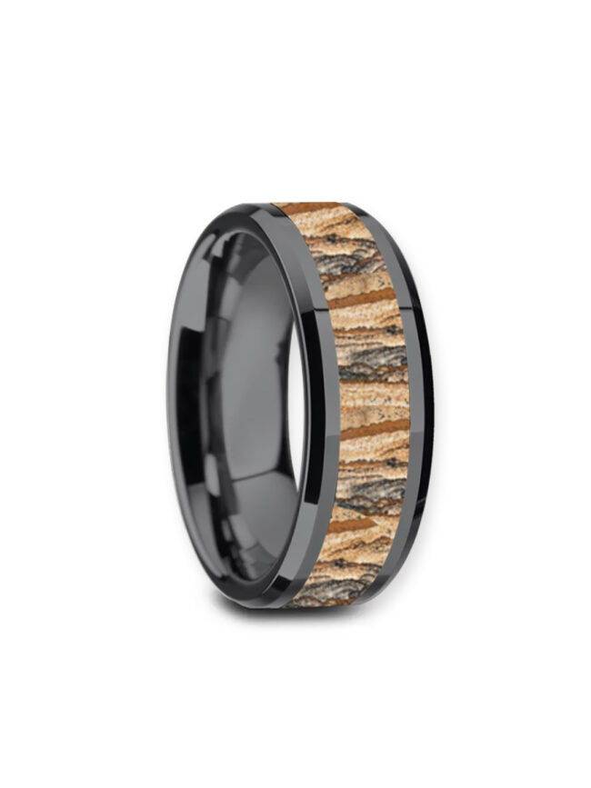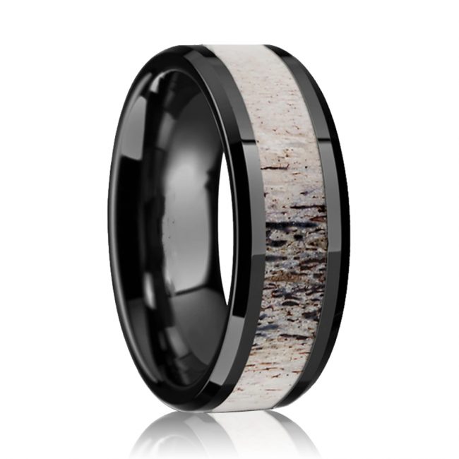 8mm-Tungsten/S.st/Titanium ring with natural deer antler inlay and Black IP Plating