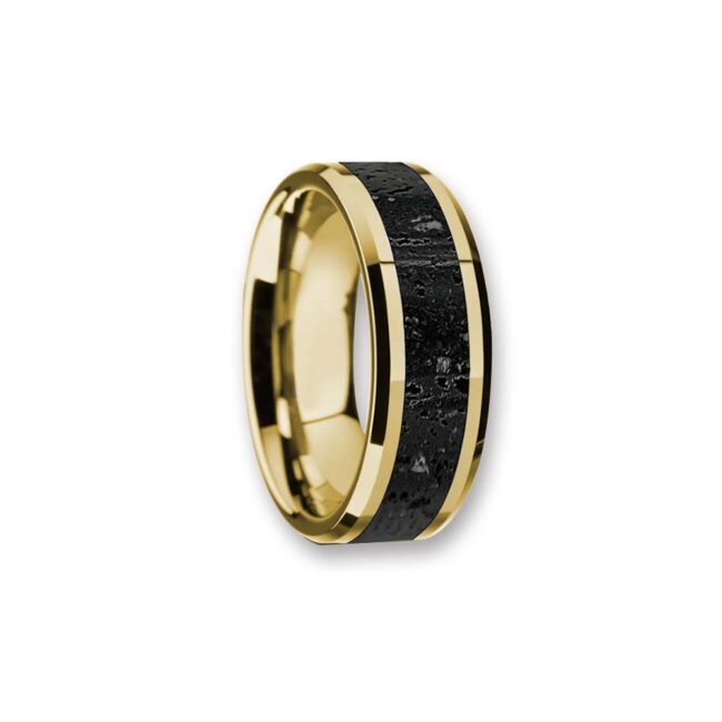 8mm-Tungsten/S.st/Titanium ring with Natural lava stone inlay and Yellow gold IP Plating
