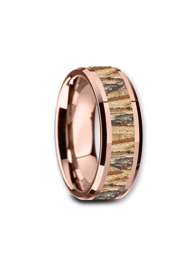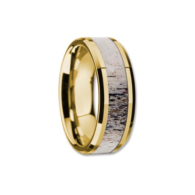 8mm-Tungsten/S.st/Titanium ring with natural deer antler inlay and Yellow gold IP Plating