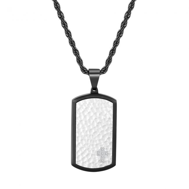 Matte Finished 316L Stainless Steel Hammered with CZ inlaid Tag and Black IP