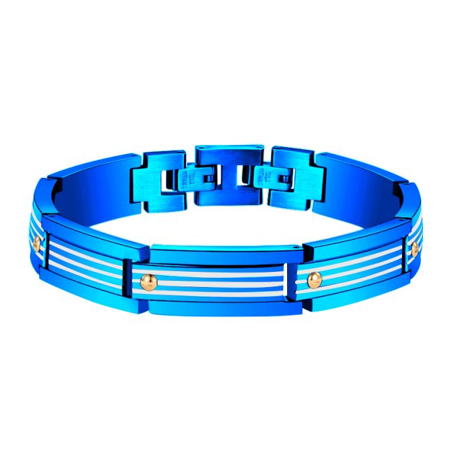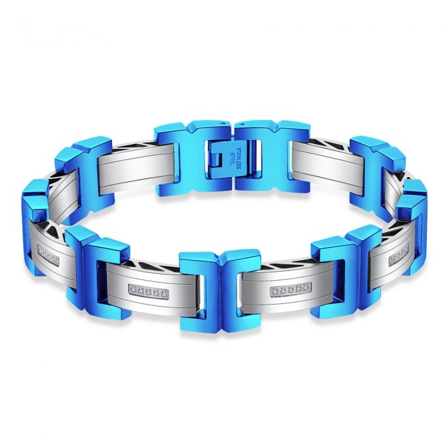 Men’s 316L Stainless Steel High Polished Finished Blue Plated Bracelet With Gold Screws