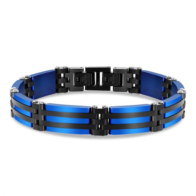Men’s 316L Stainless Steel Polished & Matte Finished Black & Blue Plated Links Bracelet