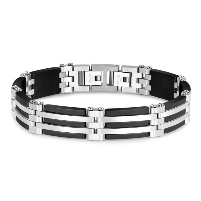 Men’s 316L Stainless Steel Polished & Matte Finished Black Plated Links Bracelet