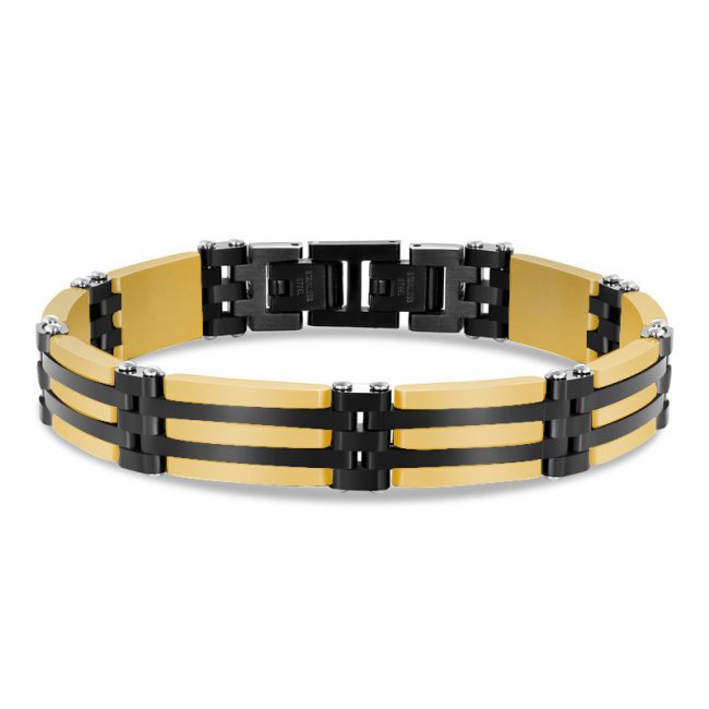 Men’s 316L Stainless Steel Polished & Matte Finished Black & Yellow gold Plated Links Bracelet