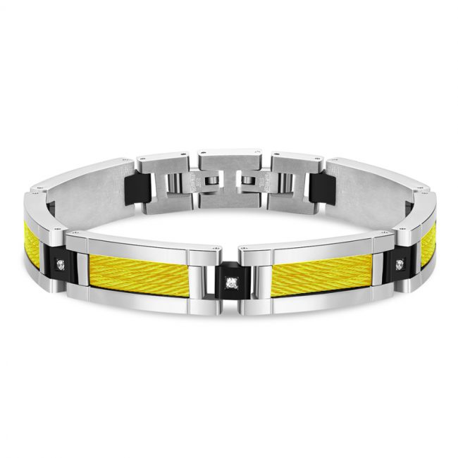 Men’s 316L Stainless Steel Polished & Matte Finished Black Plated Links Bracelet with Gold Steel wire
