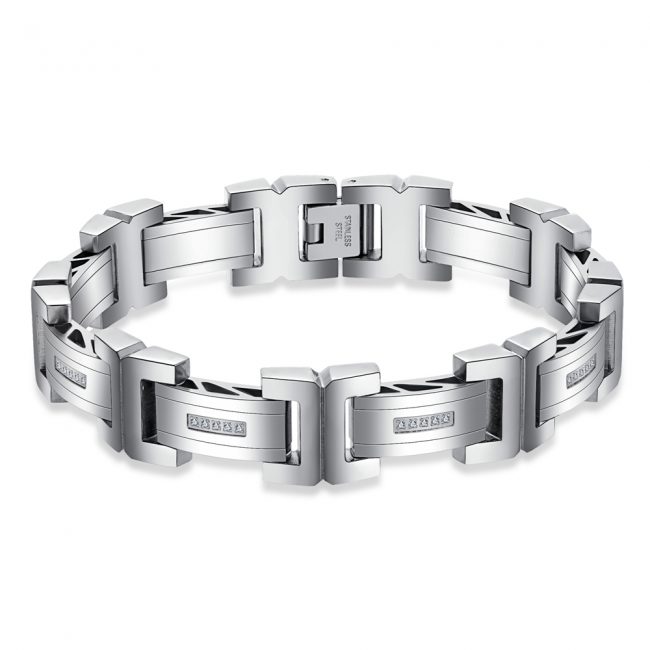 Men’s 316L Stainless Steel Polished & Matte Finished Links Bracelet with Clear CZ Inlaid