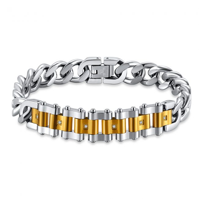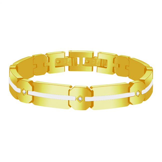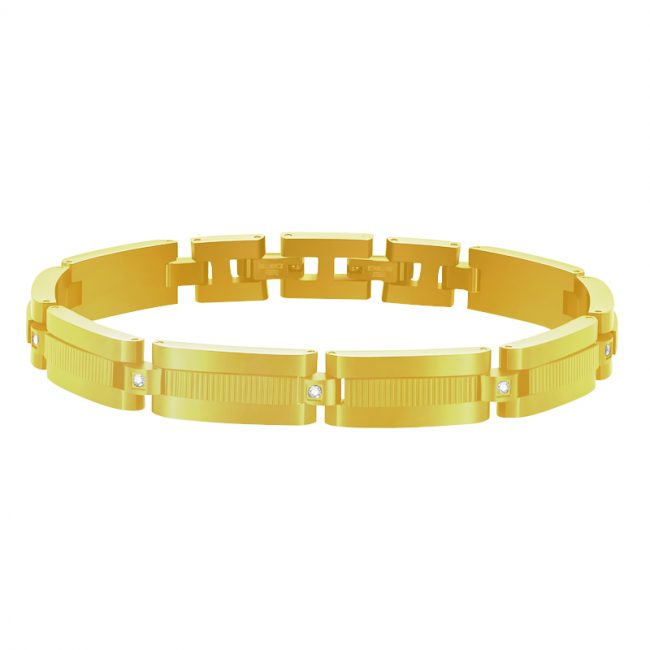 Men’s 316L Stainless Steel High Polishing Finished Yellow gold Plated Links Bracelet With Clear CZ