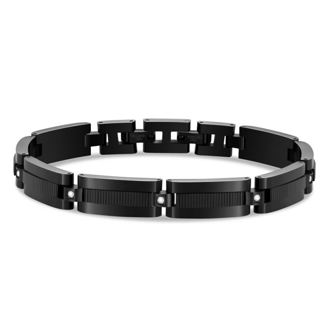 Men’s 316L Stainless Steel matte Finished Black Plated Links Bracelet With Clear CZ