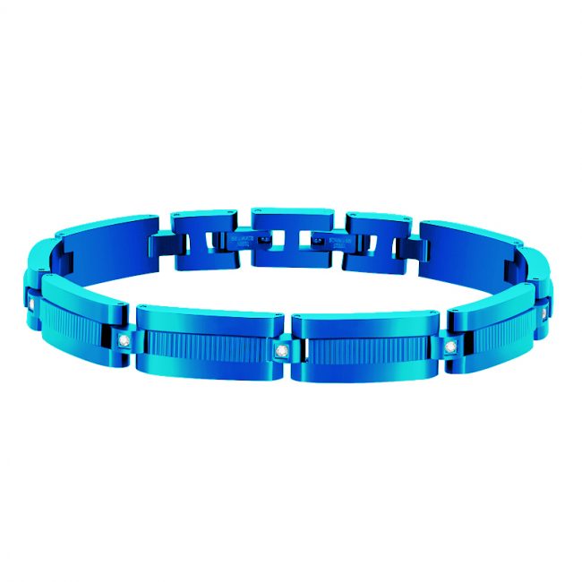 Men’s 316L Stainless Steel matte Finished Blue Plated Links Bracelet With Clear CZ