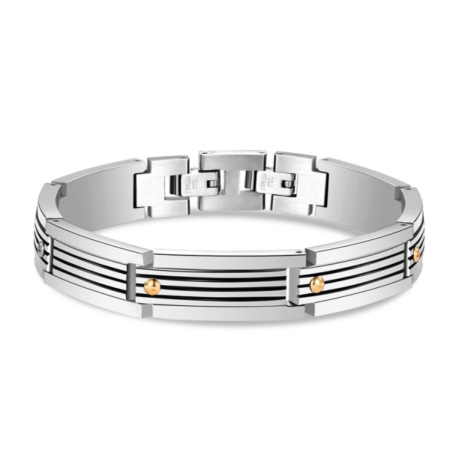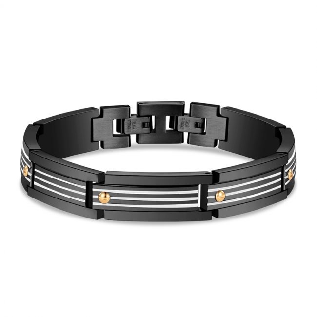 Men’s 316L Stainless Steel High Polished Finished Black Plated Bracelet With Gold Screws