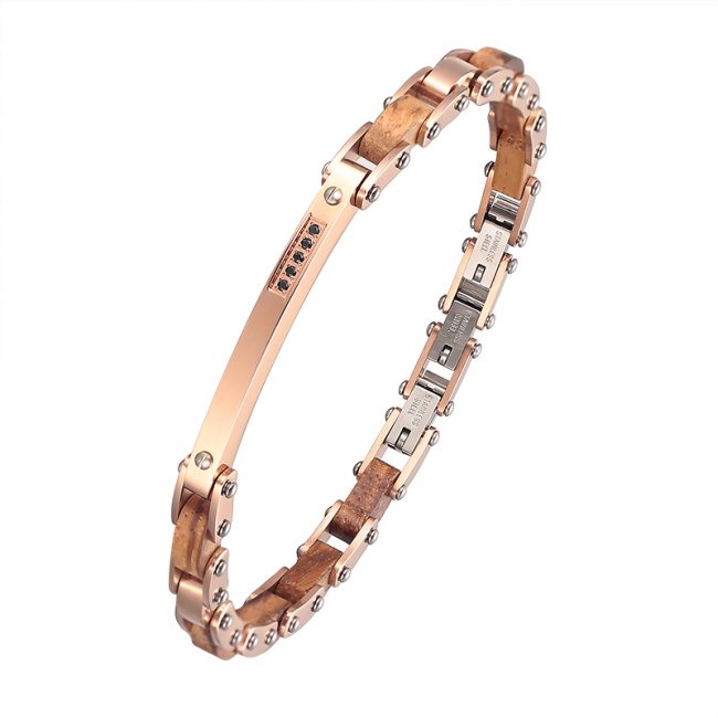 Hot Sale Silver Trendy Wood Stainless Steel Jewelry Men Bracelet