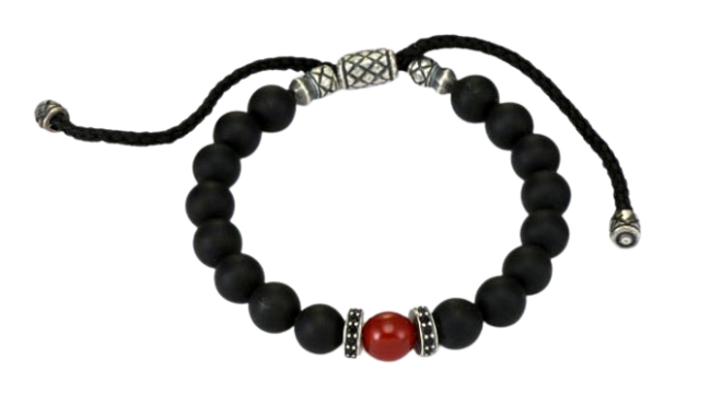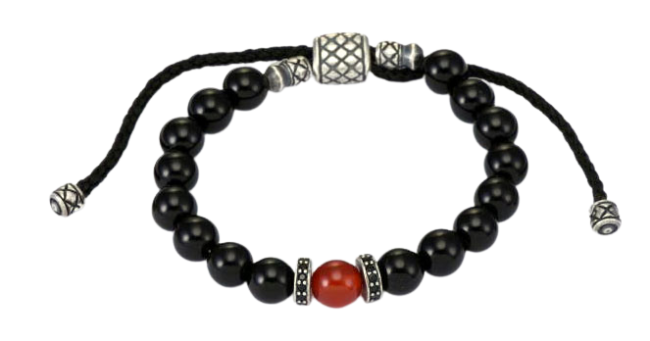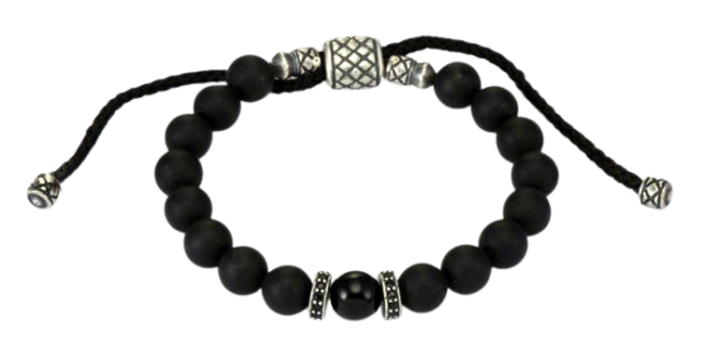 silver oxi hematite & onyx w/cz rondelle macrame beaded men’s bracelet