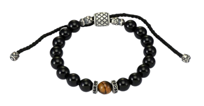 silver oxi tiger’s eyes & onyx w/cz macrame rondelle beaded men’s bracelet