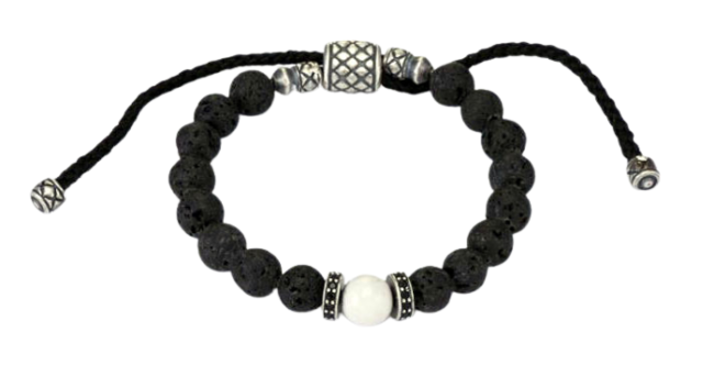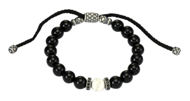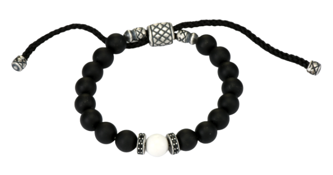 silver oxi howlite & onyx w/cz rondelle macrame beaded men’s bracelet