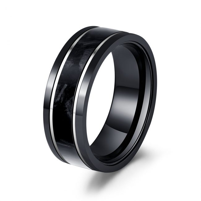 Black IP Plated & White Stainless Steel with Forged Carbon Fiber Ring