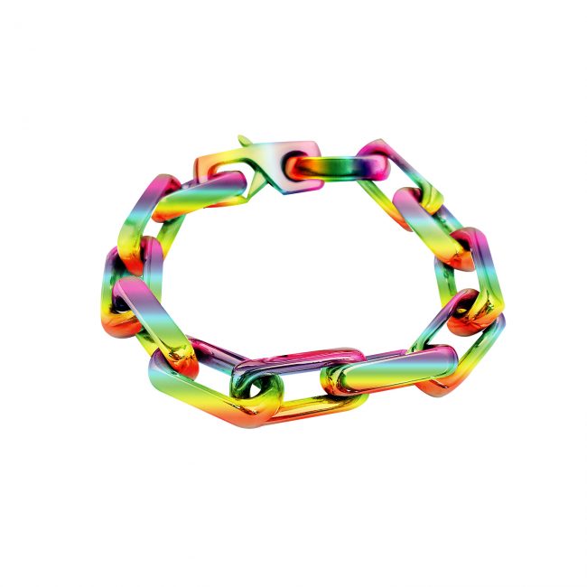 Men’s 316L Stainless Steel Polished Finish Links Bracelet With Rainbow IP Plated