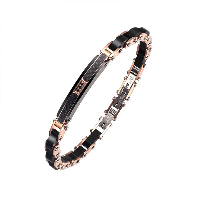Italian new arrival stainless steel wooden bracelet men’s Jewelry with IP rose gold