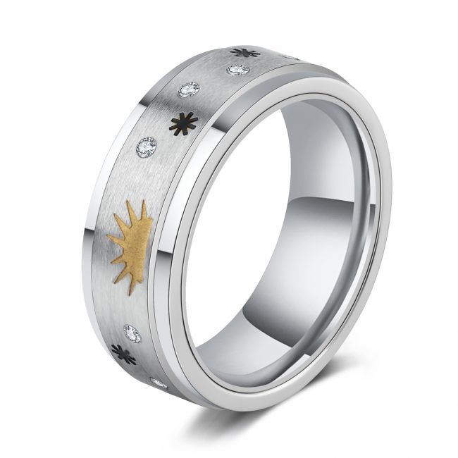 Brushed Finish Cute 316L Stainless Steel Black & gold IP Plated Ring With White CZs Bezel setting