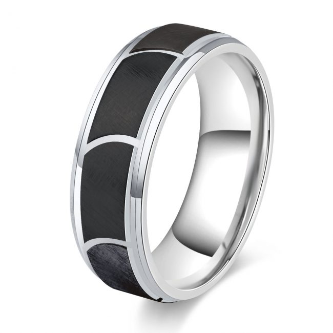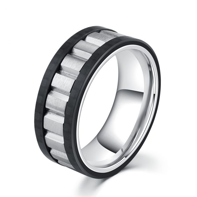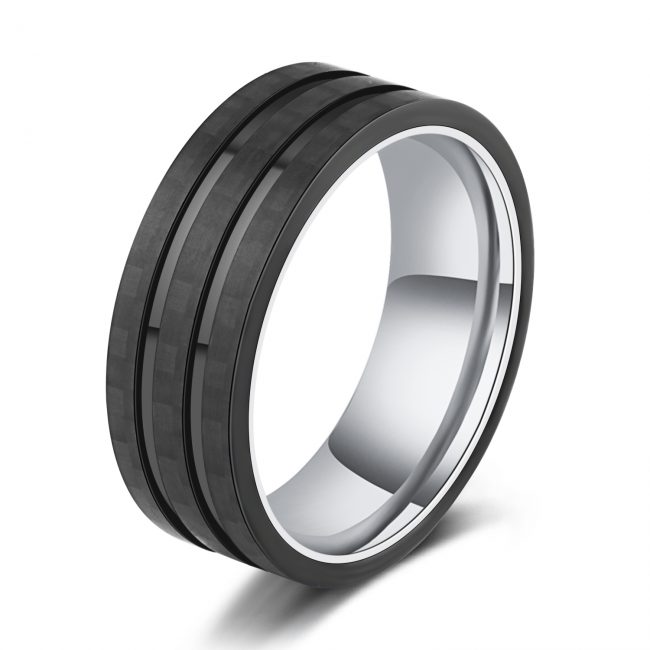 316L Stainless Steel & Solid Carbon Fiber Ring with Black IP Plated